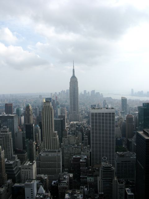 Taken from the “Top of the Rock”, observation deck, 70th floor, Rockefeller Center, looking south over Midtown and beyond.