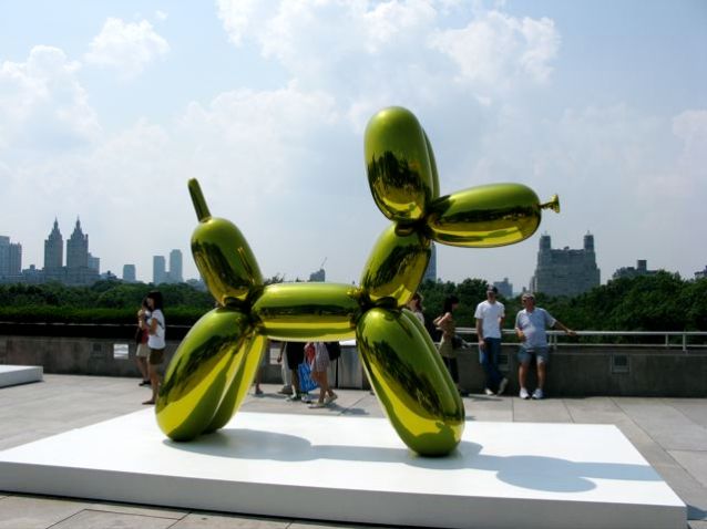 Rooftop exhibit by Jeff Koons. Very, very cool. His pieces are done in aluminum, and are unbelievably accurate representations of, in this case, a balloon dog, and in other cases, a foil-wrapped chocolate heart and a water color sketch.