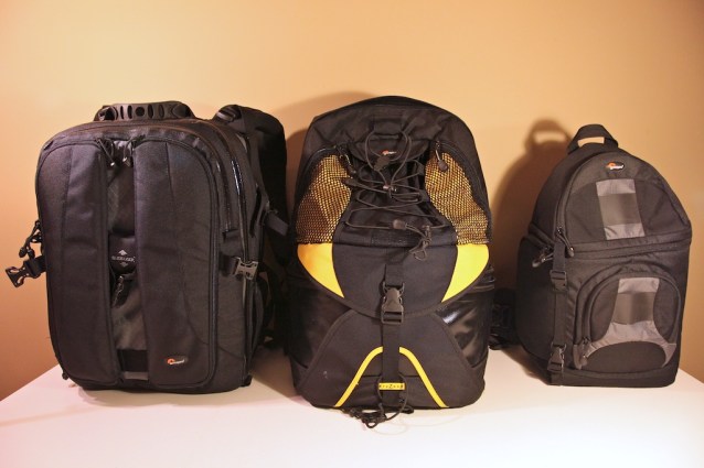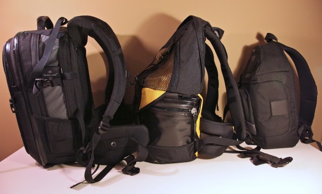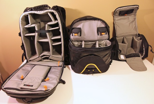 (L to R: Lowepro’s Vertex 200AW, Dryzone Rover and Slingshot 200AW)