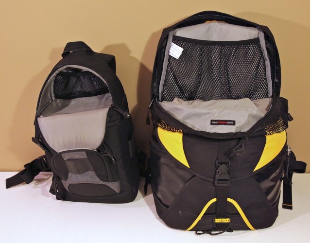 Cons: simple zippers and materials keep cost down but make the bag itself somewhat fragile; sling style can start to wear down neck and back after a while; no ventilation mesh for airflow on user contact points; does not support or hold a tripod of any size; would not support larger lenses; accessory compartment is limited to gloves and a hat, but anything larger is out of the question.