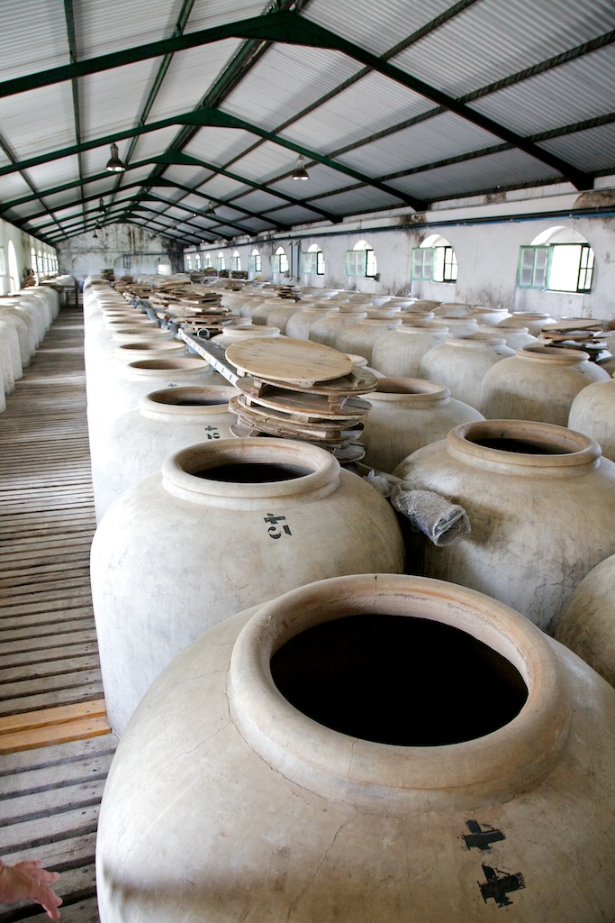 concrete aging vats for sherry wine – some 5 million litres of sherry is processed here (on vineyard – Lagare – property)