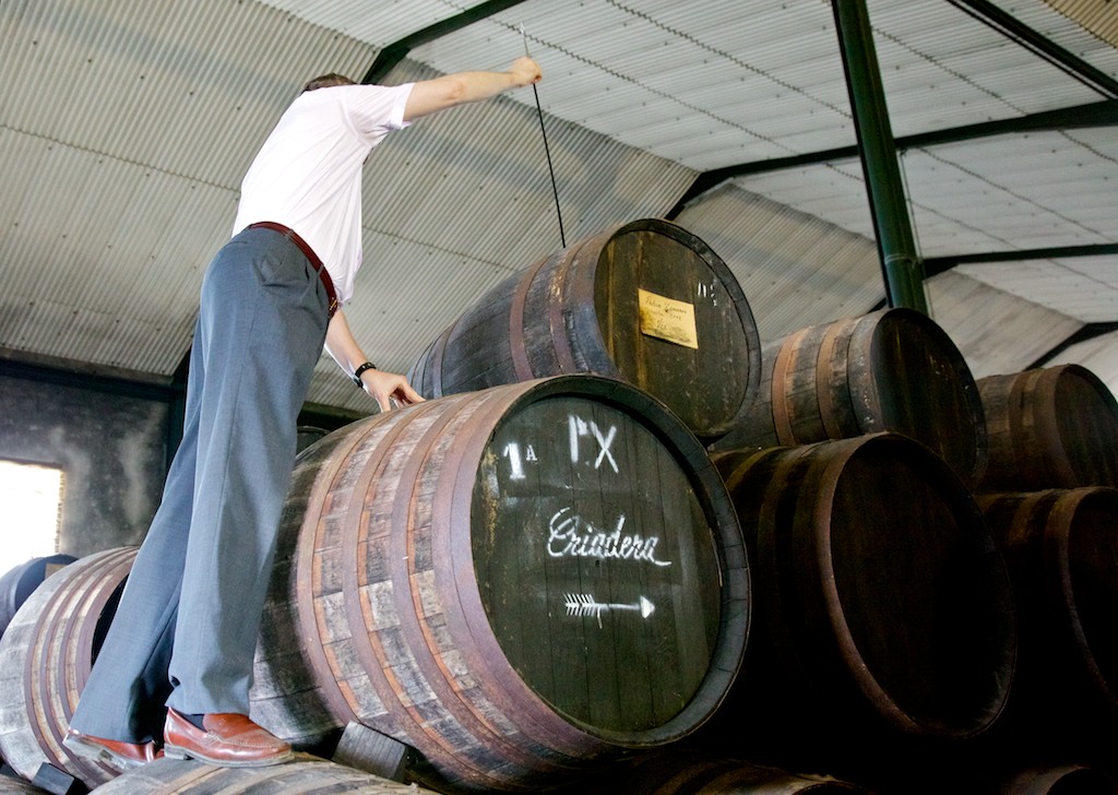 Alvear winemaker Bernardo Lucena sampling directly from cask for us!