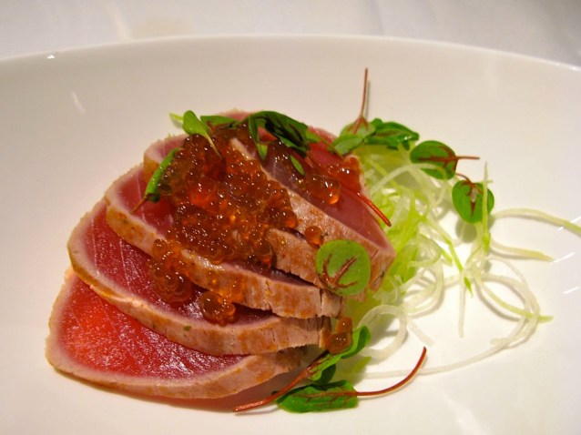 In a bit of pain, though better for it, my wife and I visited Araxi for dinner that evening to celebrate her birthday. Araxi, as you might know, is Whistler’s top restaurant and was featured on Gordon Ramsay’s “Hell’s Kitchen” show a couple of seasons ago. It’s owned by the same outfit as Blue Water Cafe, Cin Cin and West – each amongst the best eats in Vancouver and therefore Canada. Araxi was itself amazing. Their raw bar features exquisite seafood delicately prepared, and their main courses focus on local cuisine. It was delightful and well worth the hefty pricetag. (pictures below courtesy of my wife, and for more on this dinner, visit Nest and Sparkle)