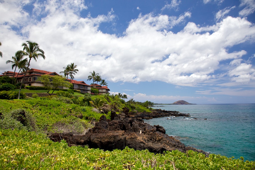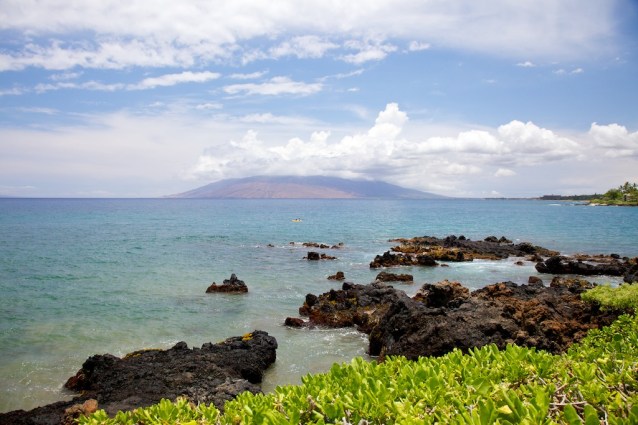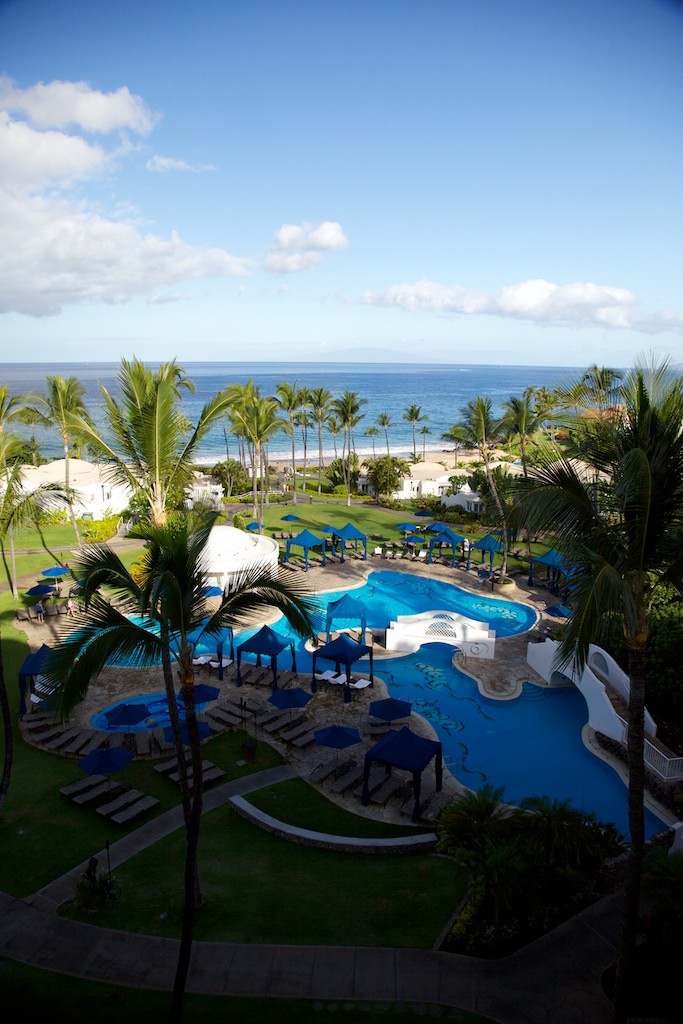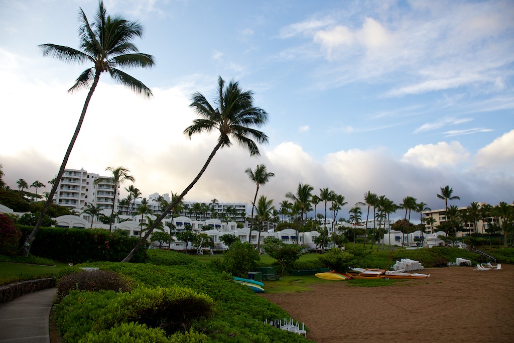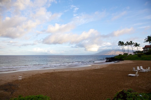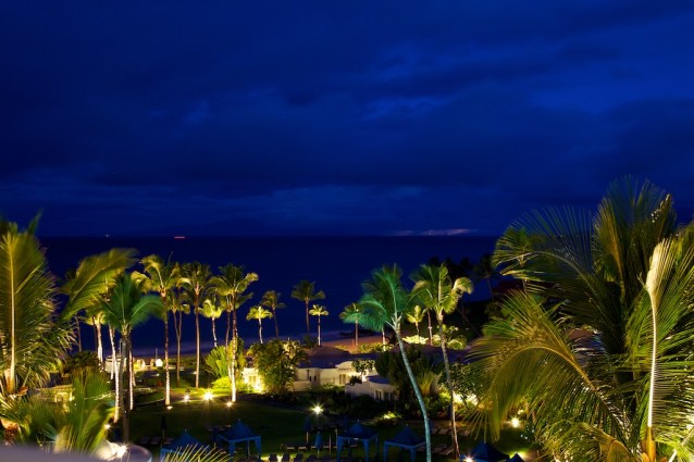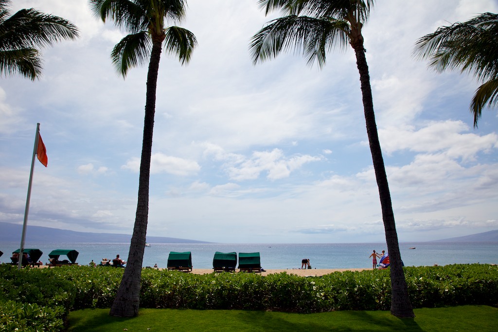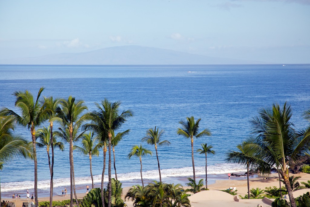 From our room, across the grounds, Polo Beach (great snorkeling), looking across to Lanai on the horizon.