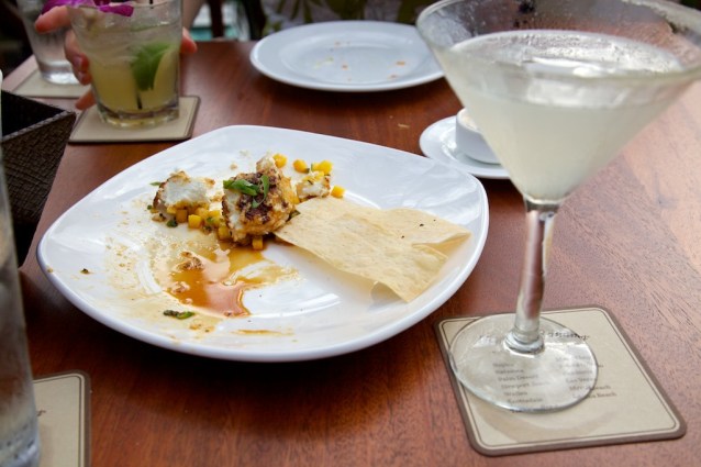 At Tommy Bahamas Tropical Cafe (several US locations - highly recommended): one of the tastiest things we ate all week: baked macadamia nut-crusted goat cheese with mango salsa and flat bread. OMG! The lemon drop martini...thought it was a good idea at the time...