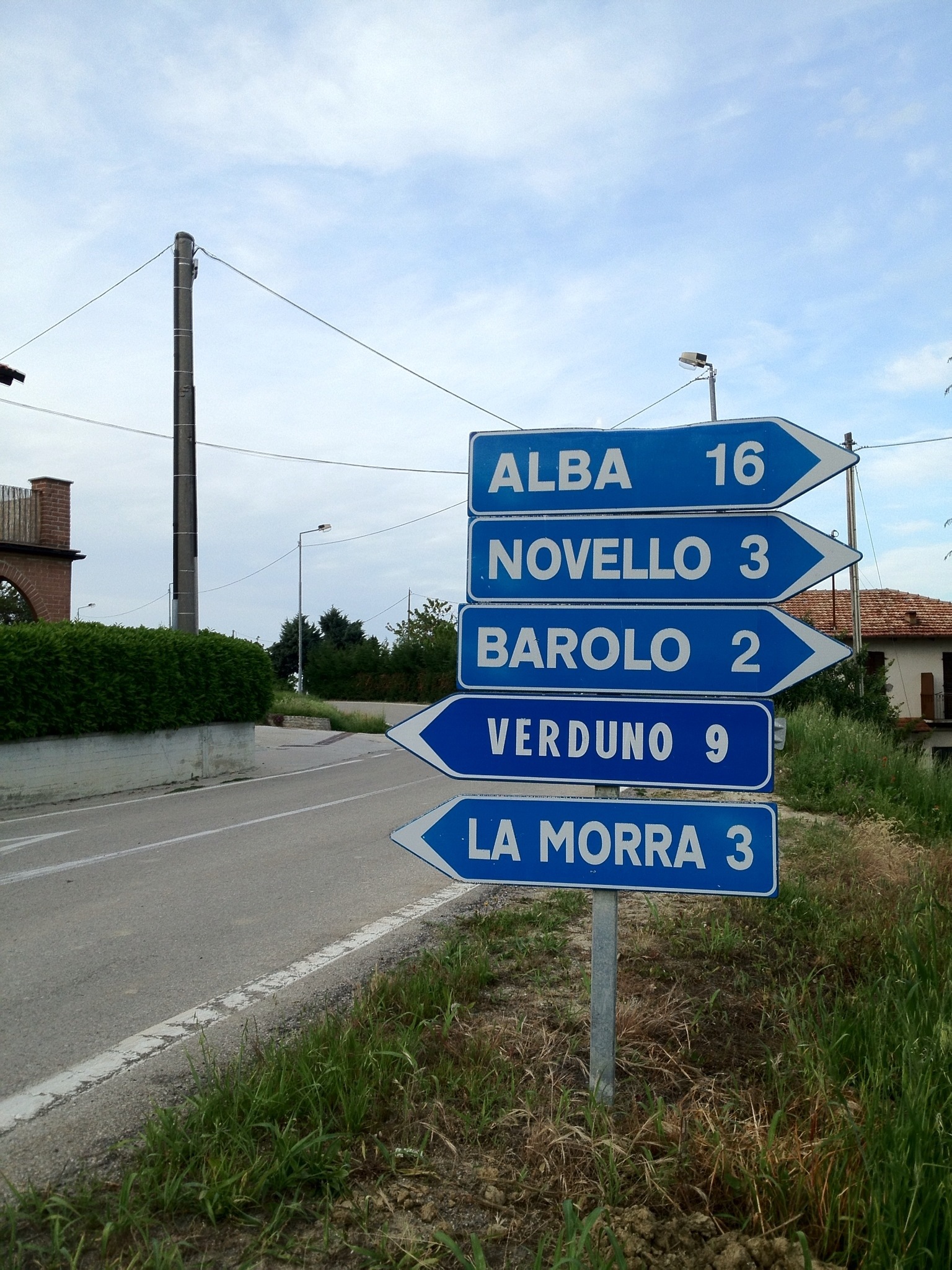 Once finally off the main highway and navigating closer to Barolo (evidenced by the signs) things started to get exciting. Thick, old vines in the vineyards hinted at what was to come, but our jaws truly dropped once we came over a rise and saw the vista of the Barolo valley before us, literally hundreds of acres of vineyard within eyesight and dotted by 17th century castles and little towns with soaring cathedrals. We’d been on the road for hours, and very near our guesthouse, but we couldn’t cease stopping to take pictures.