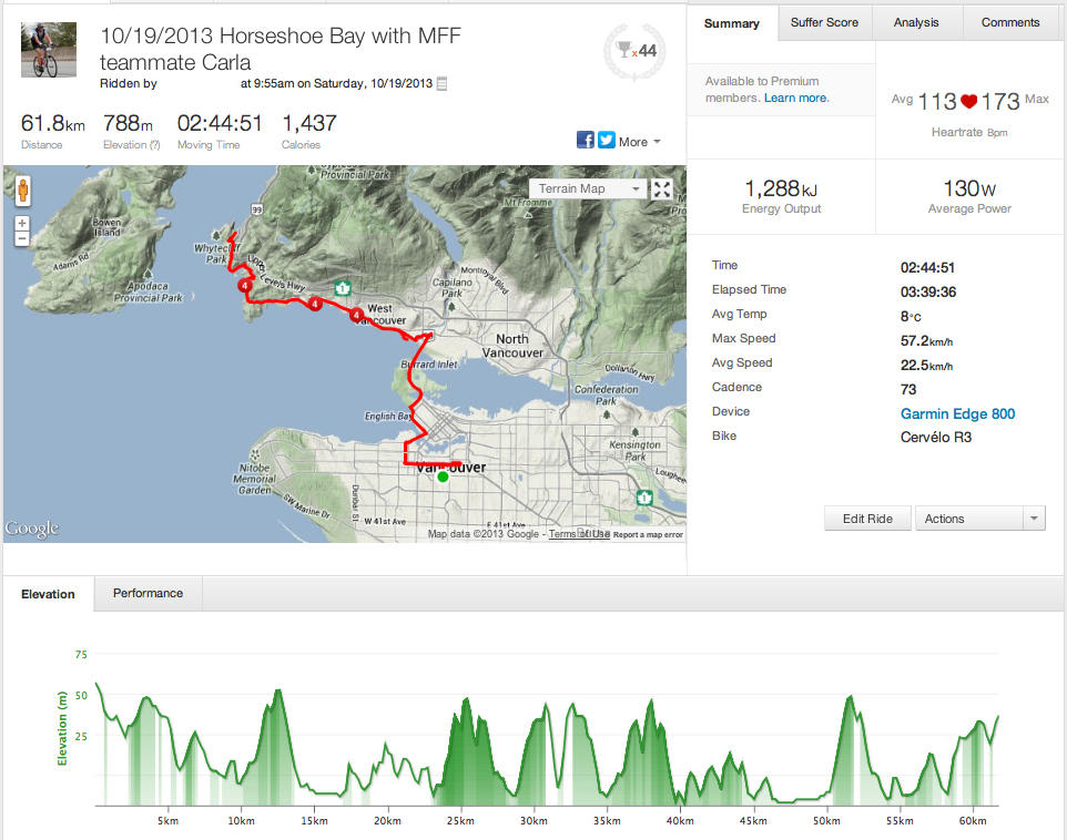 Excited to ride in the peculiar weather Vancouver has been experiencing lately, it stood up as an interestingly foggy, crisp, cool, calm and overcast day as a GranFondo clinic teammate and I set out to Horseshoe Bay. This is the same teammate who did a GranFondo prep ride to Squamish with me back in August.