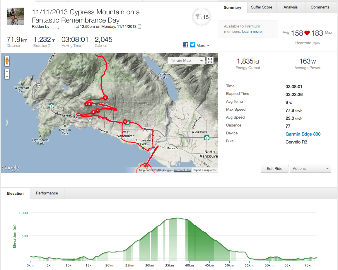 Ride: November 11, 2013 – Cypress Mountain on Remembrance Day